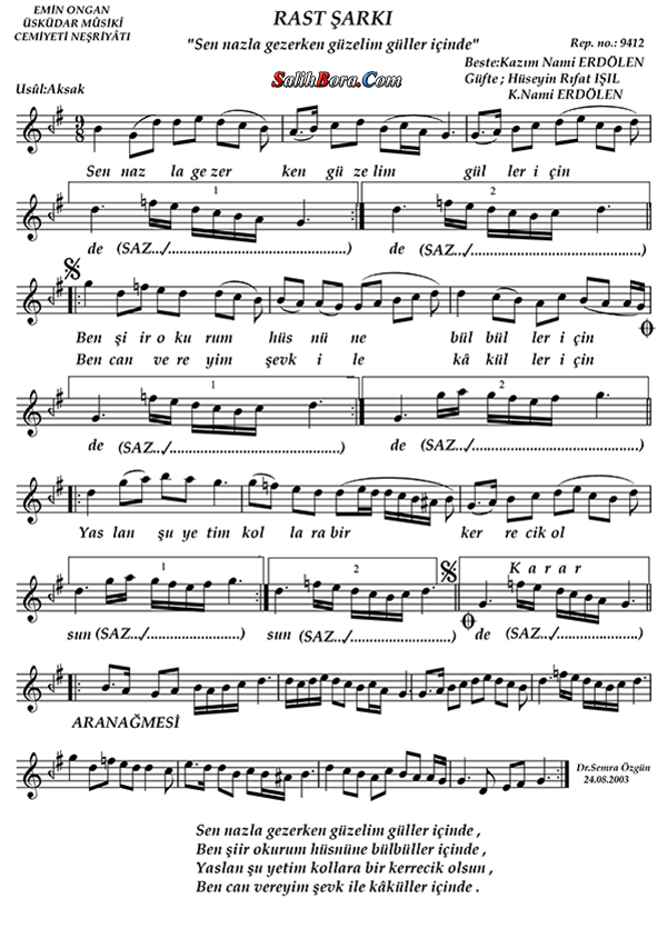 Bestecisi: Kâzım Nâmi Erdölen