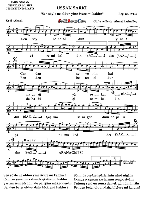 Bestecisi ve güfte şâiri: Ahmet Râsim