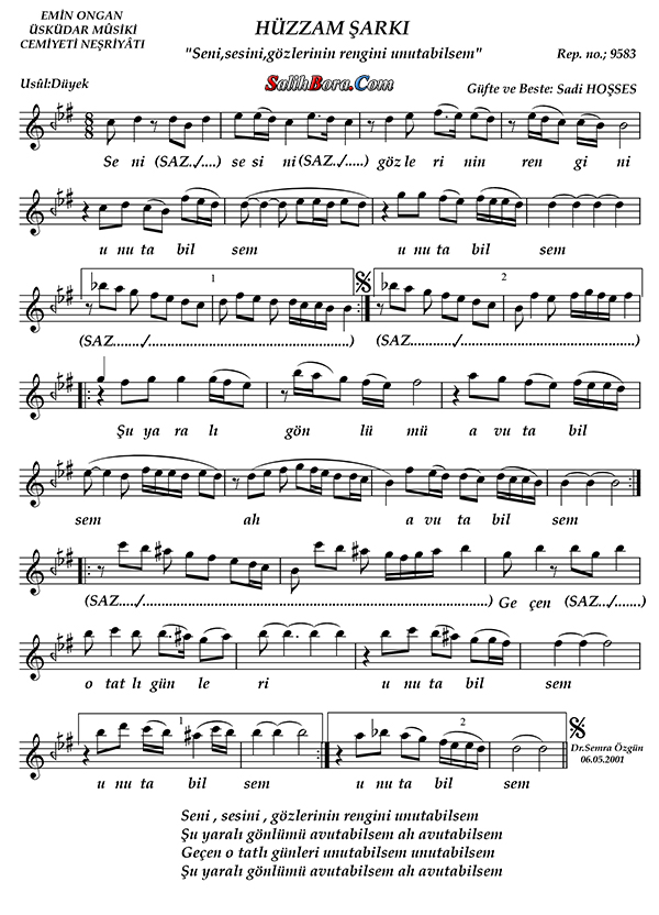 Bestecisi ve güfte şâiri: Sâdi Hoşses