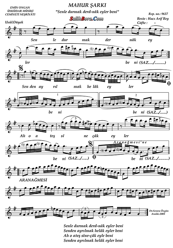 Arif Sami TOKER-Senle Durmak Derdnâk Eyler Beni (MAHUR)R.G.