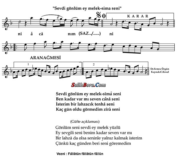 Sevdi gönlüm ey melek-sîmâ seni notası - 1
