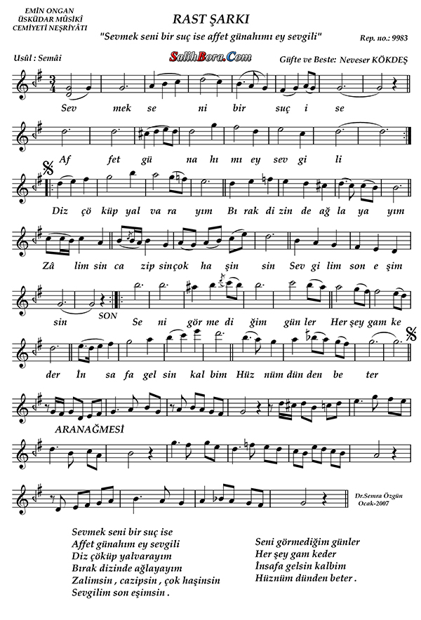 Bestecisi ve güfte şâiri: Neveser Kökdeş