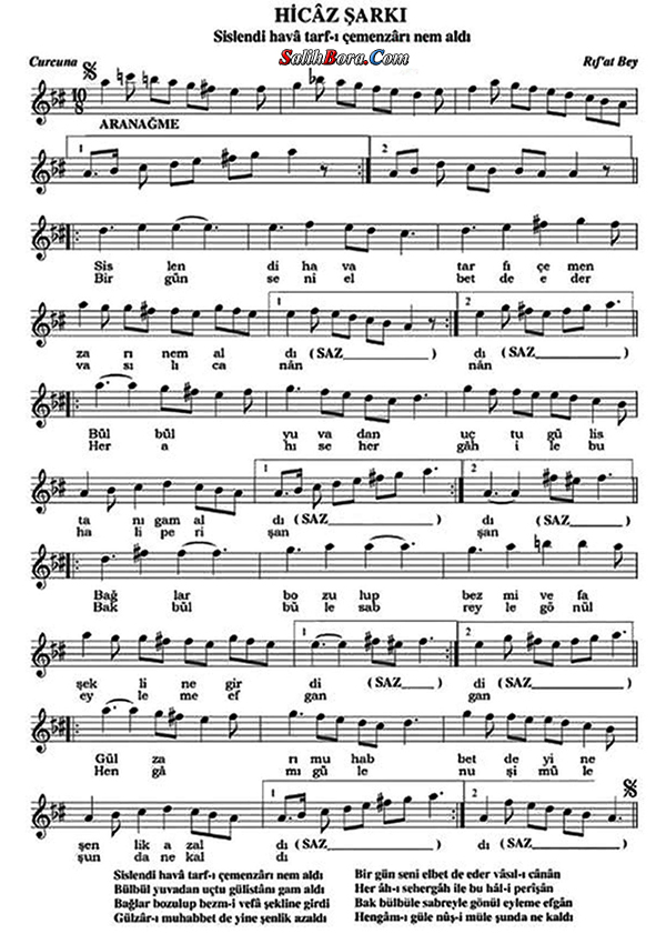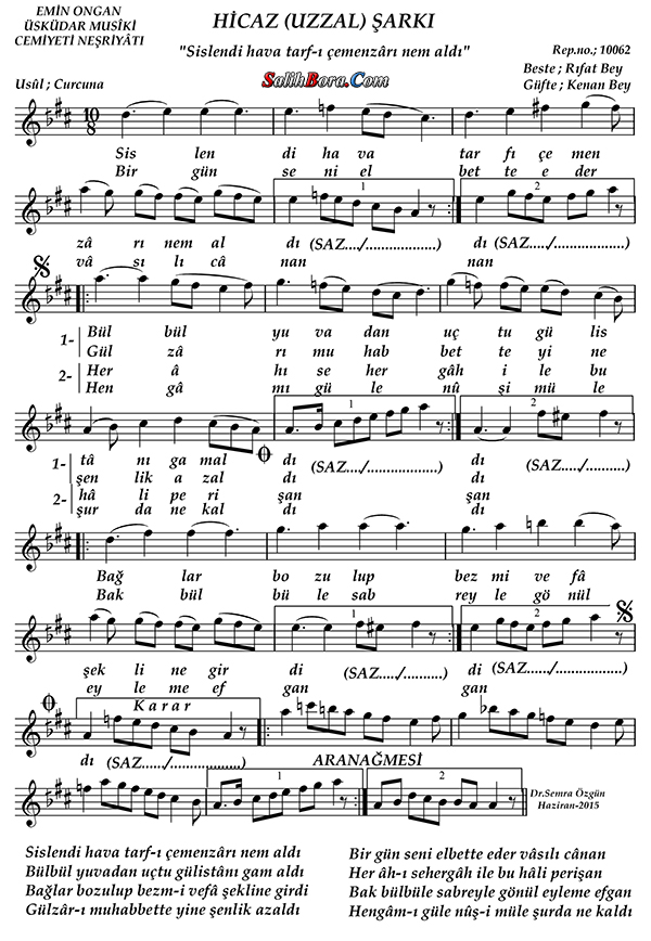 Sislendi hevâ tarf-ı çemenzârı nem aldı notası - 1