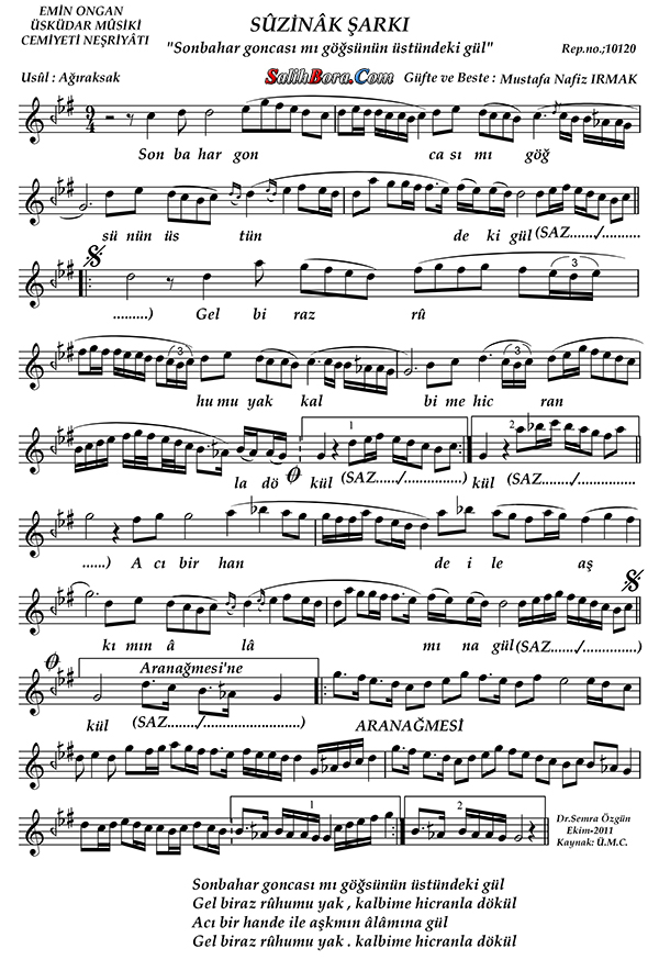 Bestecisi ve güfte şâiri: Mustafa Nâfiz Irmak