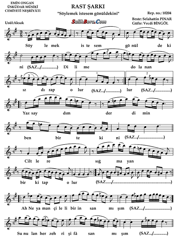 Bestesi Selâhattin Pınar'a, güftesi Vecdi Bingöl'e âit olan, rast makâmı, aksak usûlündeki şarkının; ayrıntılı bilgileri, sözleri, notaları ve video yorumları.