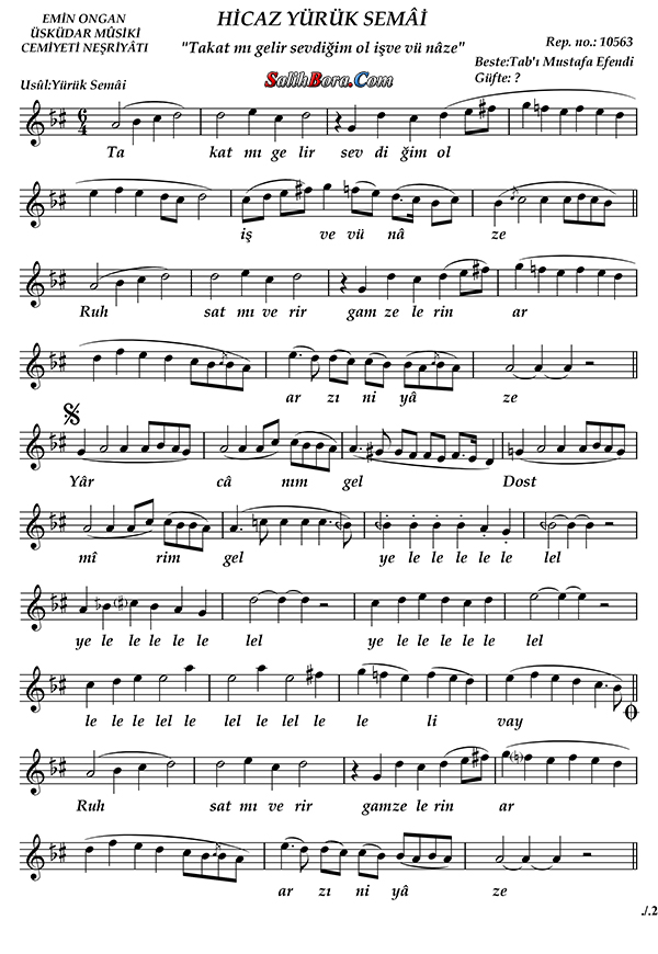 Hicaz Yürük Semâî / Tâkat Mi Gelir Sevdiğim Ol İşve Vü Nâze