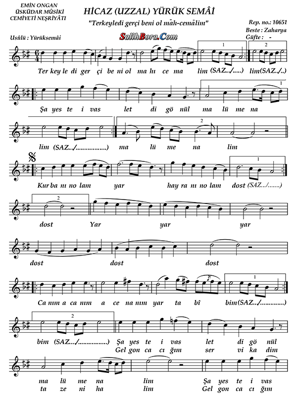 Hicaz Yürük Semai - Terkeyledi gerçi beni ol mah-ı cemalim (Gönül Makamı)