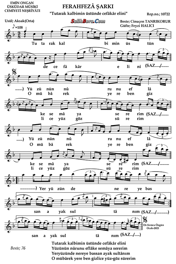 Ferahfezâ Şarkı - Tutarak kalbimin üstünde cefakâr elini #GönülMakamı