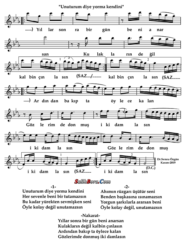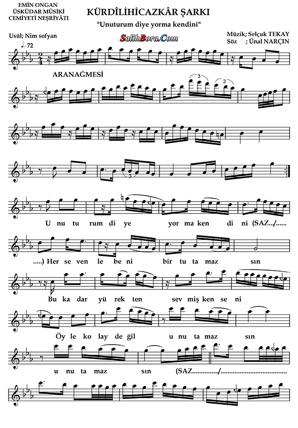 Bestesi Selçuk Tekay'a, güftesi Ünal Narçın'a âit olan, kürdîli hicazkâr makâmı, sofyan usûlündeki şarkının; ayrıntılı bilgileri, sözleri, notaları ve video yorumları.