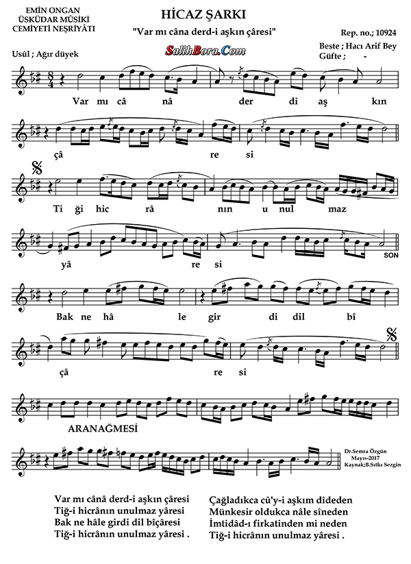 Bekir Sıtkı Sezgin - Var mı cânâ derd-i aşkın çâresi