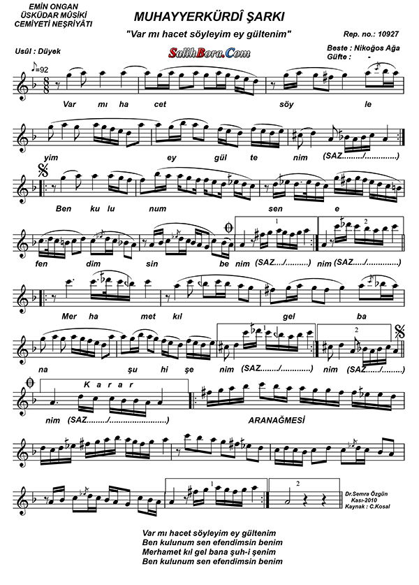 Var mı hâcet söyleyim ey gül-tenim notası - 1