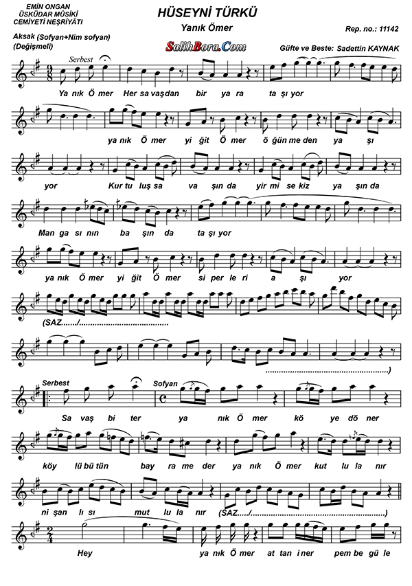 Bestesi ve güftesi Sâdettin Kaynak'a âit olan, hüseynî makâmı, aksak, sofyan ve nîm sofyan usûllerindeki şarkının; ayrıntılı bilgileri, sözleri, notaları ve video yorumları.