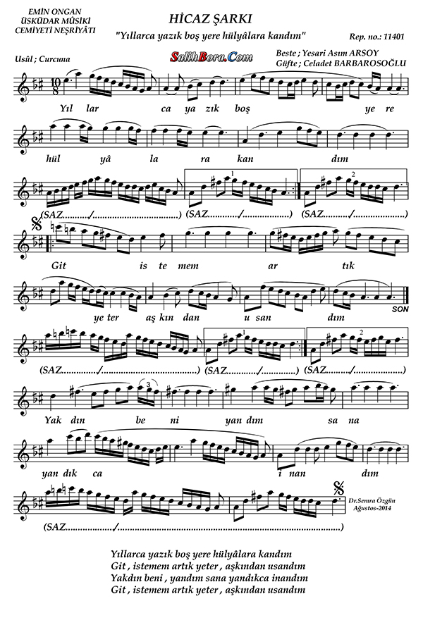 Mediha ŞEN SANCAKOĞLU-Koray SAFKAN-Yıllarca Yazık Boş Yere Hülyâlara Kandım (HİCAZ)R.G.