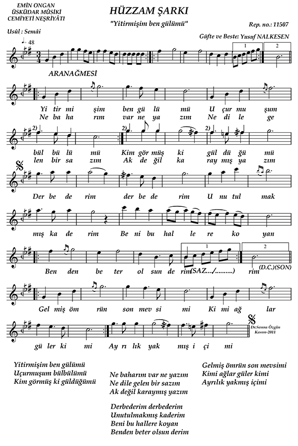 Bestecisi ve güfte şâiri: Yusuf Nalkesen