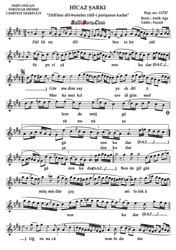 Hicaz Şarkı - Zülfüne dil-besteler (Gönül Makamı)